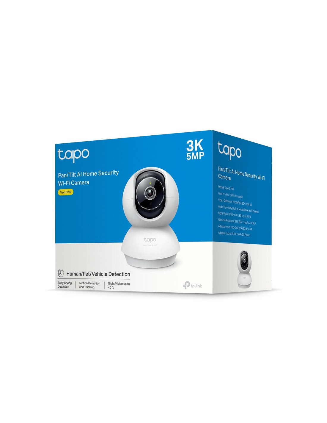TP-Link Tapo C230. Tipo: Cámara de seguridad IP, Colocación soportada: Interior, Tecnología de conectividad: Inalámbrico. Tipo de montaje: Techo/Escritorio, Color del producto: Blanco, Factor de forma: Bombilla. Ángulo de campo de visión (FOV): 88°, Ángulo de visión de la lente, horizontal: 75°, Ángulo de visión de la lente, vertical: 41°. Tipo de sensor: CMOS, Tamaño del sensor óptico: 25,4 / 3 mm (1 / 3"). Intervalo de longitud focal: 4 mm