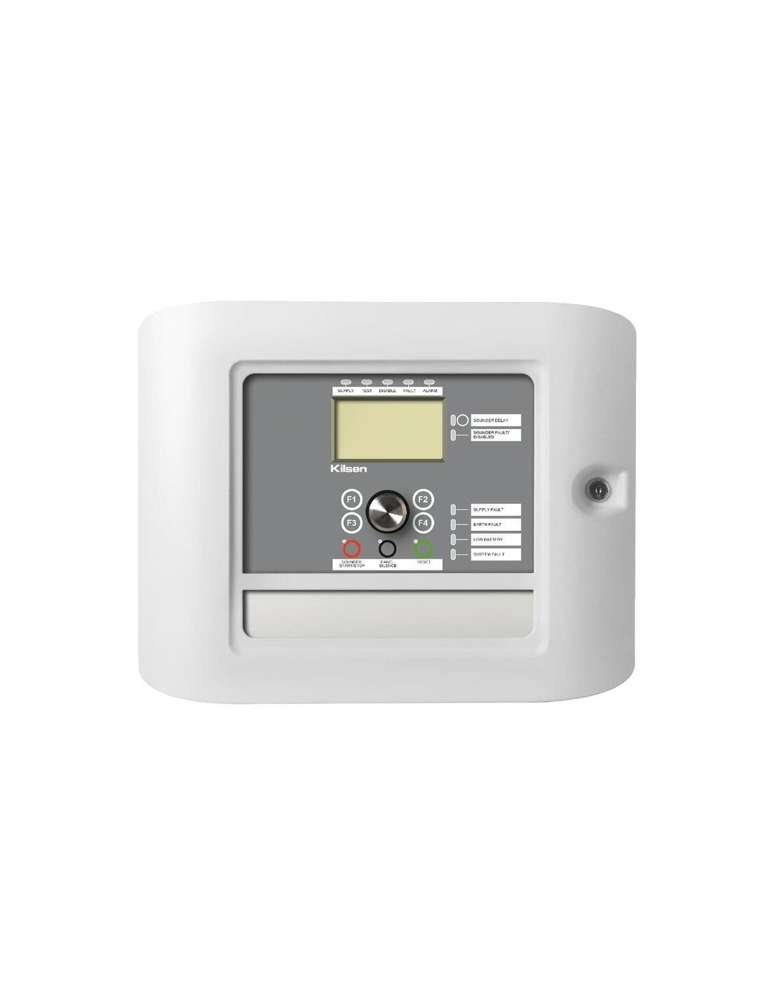 Central de detección de incendios analógica de un lazo Kilsen Hasta 250 dispositivos (125 detectores + 125 módulos/pulsadores/sirenas)64 zonas. 2 salidas pre-programadas como sirenas. 4 salidas adicionales (alarma y avería general)2 entradas configurables. Ethernet. LCD gráfico, 3xUSB y 3xRS232 3 niveles de operador. 9999 eventos. Hasta 24 LEDs indicadores Fuego y Avería Dimensiones 410x298x162mm