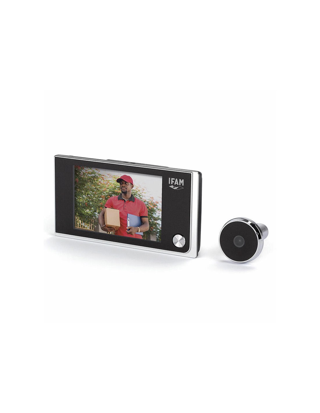 Pantalla lcd de 3,5 tft. resolución de 480×320. amplio ángulo de visión: 120 grados. funciona con 4 pilas aaa. la pantalla se puede apagar automáticamente transcurridos unos segundos. apto para puertas de 40 a 100mm de grosor. apto para diámetros de agujero de puerta de 14 a 28mm. fácil instalación. acabado plata. ifam